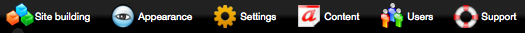 Content area where you can organize, edit and categorize any content you've added to your site. Options here are reflected by which features you've enabled. For instance if you've enabled the "Image Gallery" feature, you'll see Image Galleries listed in the content section.