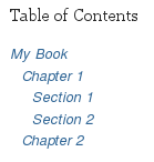 This widget is similar to the Book Table of Contents widget, with one important distinction. It will display the Table of Contents for the book that is currently being viewed. If the visitor isn't viewing a book, then it will display nothing.