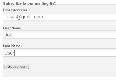 This widget lets users sign up for a mailing list at MailChimp. You will need register an account with MailChimp to set up the mailing list and then enter the API key to your MailChimp account in your site settings. Once that is set up, configuring the box will let you choose one of your lists. Finally the box can be configured to display a signup form or as a link that opens a popup.